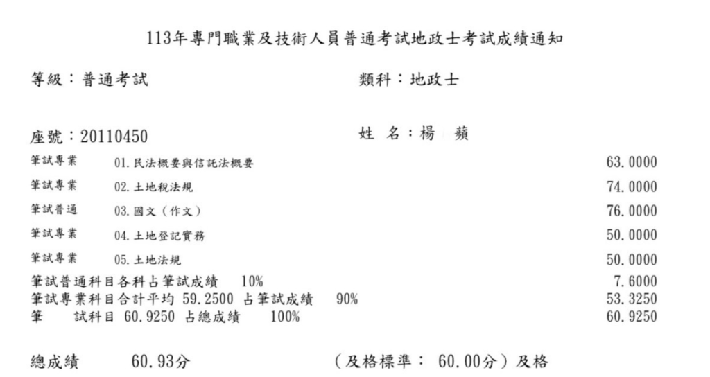土法跟土登,我在準備上只求「有」的階段,沒有特別覺得要每個題目拿高分,沒有寫的特別完整,所以也確實反映在基本每題分數並沒有太高,但成績出來評分又比自己原先預期的來得低,確實老師們改題相當嚴謹。